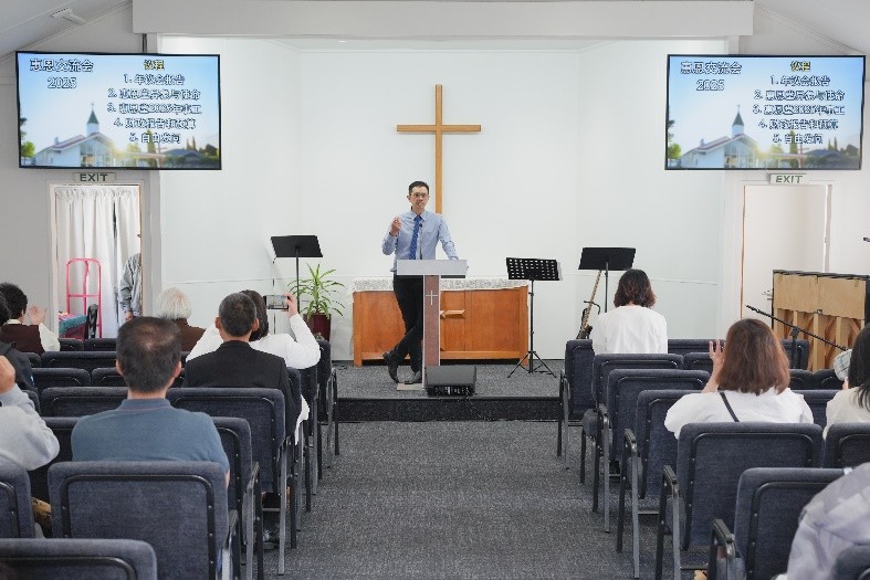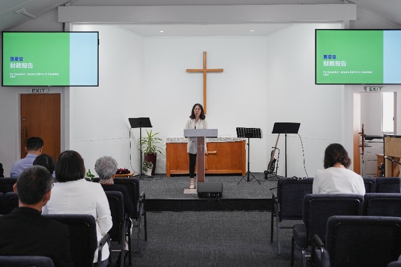 会友领袖李玮姐妹通过图片集,与大家回顾了2024年教会生活的点滴,重温了团体的温暖,并分享了2025年的活动和事工计划。教会财政黄钰媛姐妹详细报告了教会的财务状况及新年度预算,确保大家对教会的透明度充满信心。